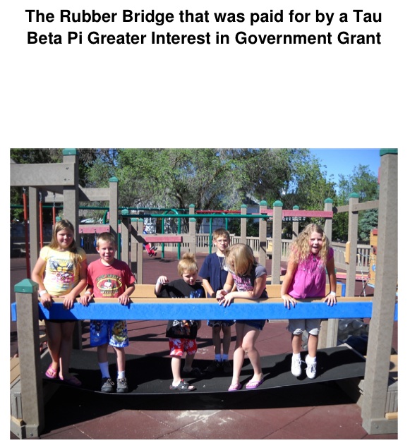 The Utah Gamma Chapter of Tau Beta Pi recently submitted their Greater Interest in Government (GIG) report of their September 2009 activity with the Whittier Center adventure playground.