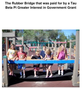 The financial contributions from Tau Beta Pi’s GIG grant funded the purchase of the rubber bridge. Look for more details of this wonderful project in upcoming issues of Tau Beta Pi’s The Bulletin and The BENT.
