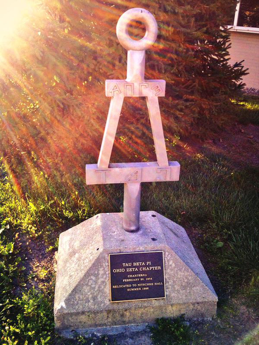 A very cool image of the Bent monument in front of the new engineering building at the University of Toledo was recently tweeted by Scott Jacoby (@Sparkurton). This is the home of the Ohio Zeta Chapter of Tau Beta Pi.