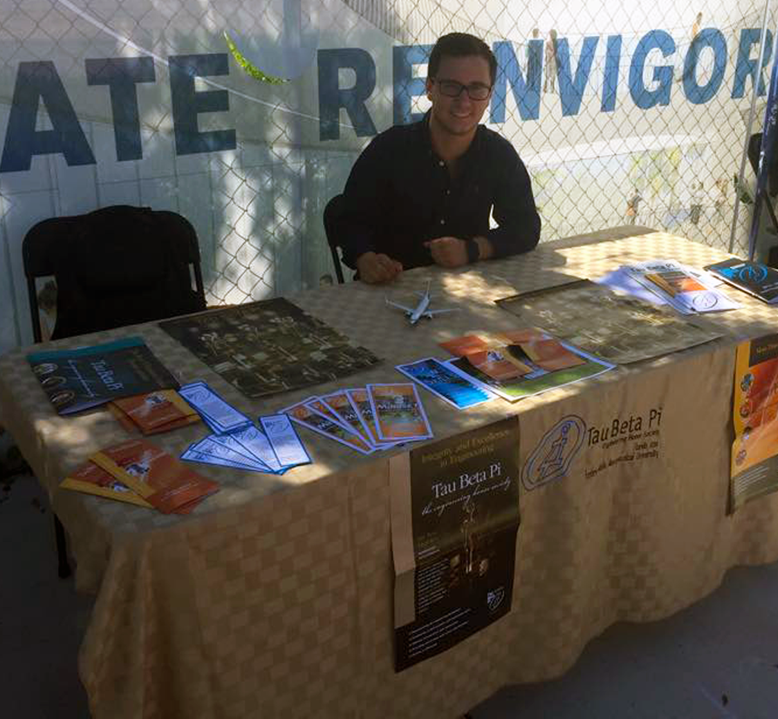 Earlier this month, student members from the Florida Iota collegiate chapter of Tau Beta Pi took turns volunteering at the activities fair for Embry-Riddle Aeronautical University (FL). Below is an image of one of the student members at the booth. More images are available on the chapter’s Facebook page.