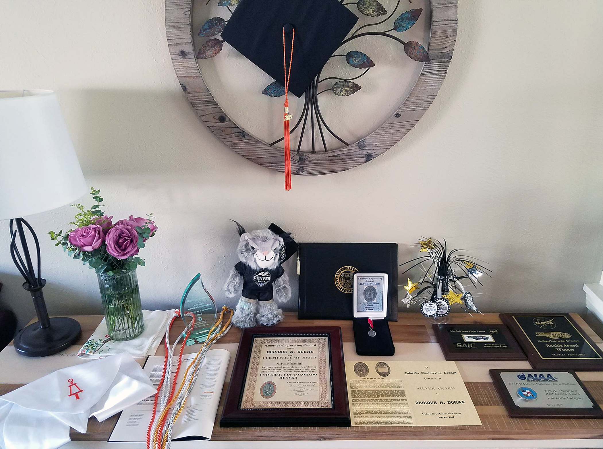 In addition, Duran graduated with honors, won best student of the mechanical engineering department, won most outstanding student for the College of Engineering and Applied Science, and was awarded the Colorado Engineering Council’s Silver Medal. In the fall, he will begin working as a rocket engineer with United Launch Alliance. He posted the image above after commencement.