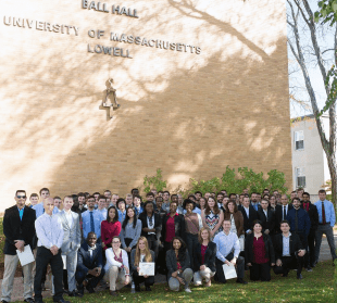 On October 28, the University of Massachusetts at Lowell hosted their fall Tau Beta Pi initiation. Nearly 70 new members joined Tau Beta Pi at the Massachusetts Theta Chapter, including professor Oliver C. Ibe, Ph.D. (MA Q ’75), as an eminent engineer. Dr. Ibe teaches at UMass Lowell. The image below was taken of the new initiates, and others in attendance, and posted to the MA Theta Facebook group.