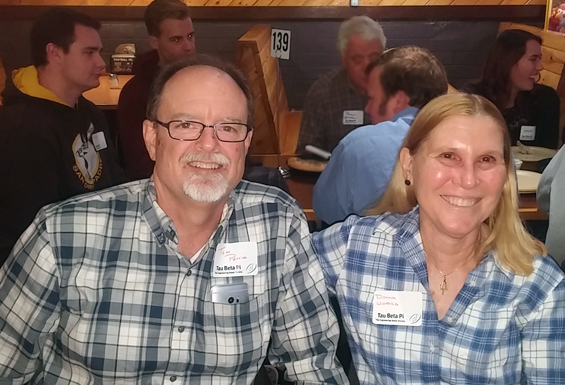 The group also discussed plans for Tau Beta Pi Day, the ratification of proposed changes to the TBP Constitution & Bylaws, and upcoming board elections for the alumni chapter. Above is an image of two Tau Bates in attendance: (left to right) Tom Perrine, AZ B ’82; and Donna L. Woodka, AZ B ’81.