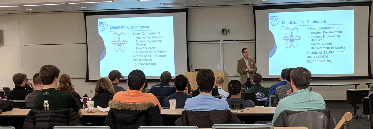 The image above is from the conference in which TBP Vice President Wayne B. Paugh, LL.M., JD (FL G ’93), is addressing the attendees and presenting information about the TBP K-12 MindSET program.