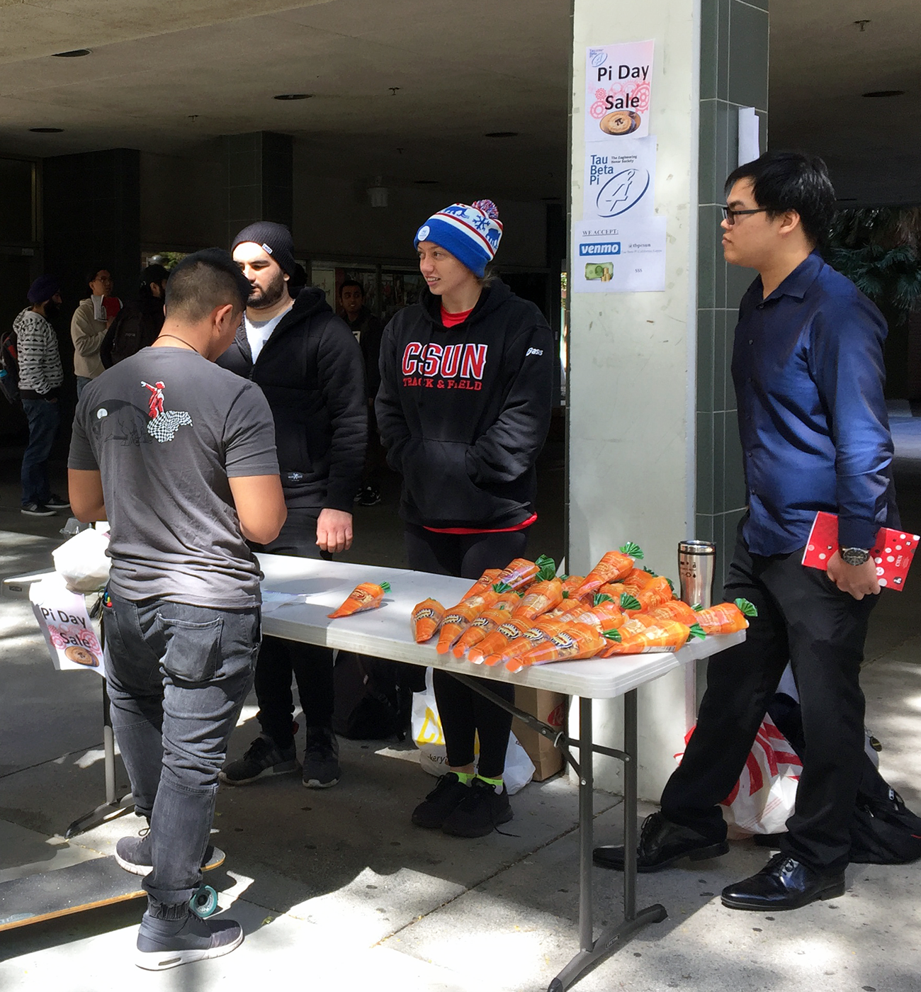 (Right Image) The California Kappa Chapter at Cal State Northridge hosted a Pi Day fundraiser and gave out popcorn to anyone that could memorize and repeat the first 15 digits of Pi. Photo courtesy of Yin Fung Khong, CA K 2017, chapter president.