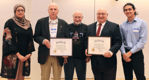 The successful event included the presentation of Distinguished Service plaques to recognize retired MD Beta advisors William L.P. Fourney, Ph.D. (WV A ’62), and Charles B. Silio Jr., Ph.D. (IN G ’65), for decades of outstanding service. See image above of advisors (left to right: Executive Councillor Menna Youssef, Ph.D. VA G ’04; Dr. Fourney; Russ Werneth, MD B ’64; Dr. Silio; and Tonlé Bloomer, MD B 2019.