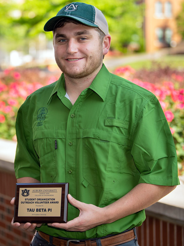 The Auburn University College of Engineering recently recognized three students as its Student Volunteers of the Year, recognizing “outstanding students who assist with K-12 outreach initiatives.” Two of the awardees are Tau Bates:
