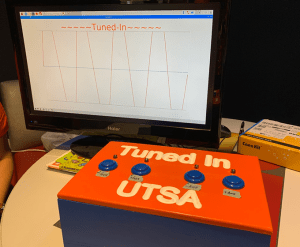 Moctezuma’s project, Tuned In, challenges children to decode a sample wave form by varying the frequency, amplitude and phase of an oscilloscope-type wave form tracing. Students adjust the oscilloscope tracing to match the test pattern to the target, while completing challenges to become a master spy. It will be installed at the children’s interactive museum in San Antonio in 2020.