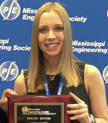 The University of Mississippi civil engineering student Shelby L. Bottin, MS Beta 2020, was elected vice president of the Chi Epsilon Engineering Honor Society and treasurer of the campus chapter of the American Society of Civil Engineers. She has worked as a trainee at the U.S. Army Corps of Engineers’ Engineer Research and Development Center in Vicksburg in the structural mechanics branch of the Geotechnical and Structures Laboratory.