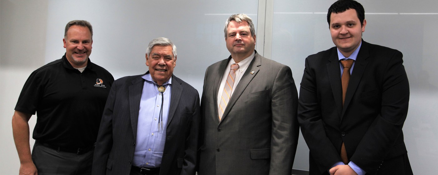 Pictured above, from left to right: Kurt P. Rouser, Ph.D., OH H ’11, Neal A. McCaleb, OK G ’57, Dr. Paul Tikalsky, dean of the College of Engineering, Architecture, and Technology; and Jacob L. Lewellen, OK G ’22.