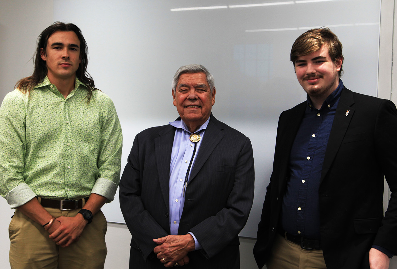 On September 23, members of the Pioneer Alumni Chapter, OK Gamma Collegiate Chapter, the Center of Sovereign Nations, and Oklahoma State University (OSU) staff attended a reception in honor of Neal A. McCaleb, OK G ’57, who was named a 2021 TBP Distinguished Alumnus. This award recognizes alumni who have demonstrated adherence to the ideals of Tau Beta Pi and foster a spirit of liberal culture on local, national, and international levels. Seen below with Mr. McCaleb is Caleb M. Bengs, OK G ’21, who received the TBP Scholarship named for McCaleb.